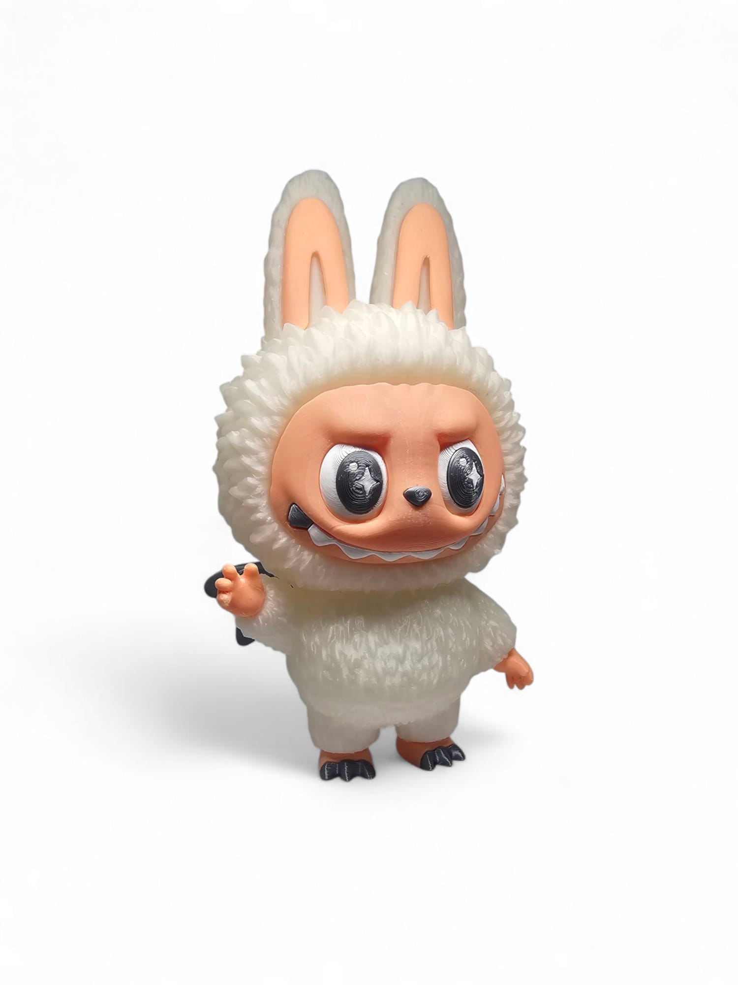 Labubu to postać, która zyskała serca fanów na całym świecie dzięki swojemu niepowtarzalnemu wyglądowi i charakterowi. Ta starannie wykonana figurka oddaje każdy detal oryginalnego projektu autorstwa Kasinga Lung z kolektywu The Monsters – od dużych, czujnych oczu, przez charakterystyczny szeroki uśmiech, aż po miękką, futerkową fakturę odwzorowaną w tworzywie.